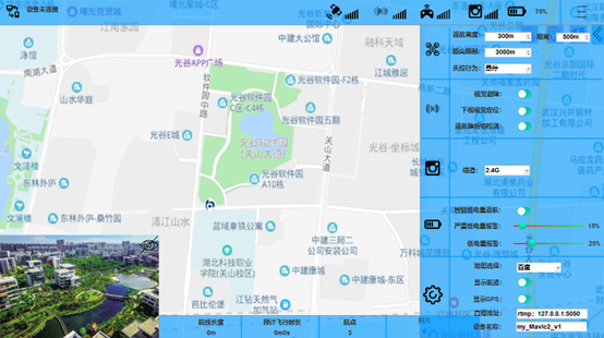 無人機在飛行過程中可以通過飛控軟件進行監視和人為干預無人機、云臺和照相機的行為,一款無人機飛控軟件可以同時連接多架無人機,并可以在界面上看到多架無人機在地圖中的位置信息及無人機傳回的可見光視頻直播。