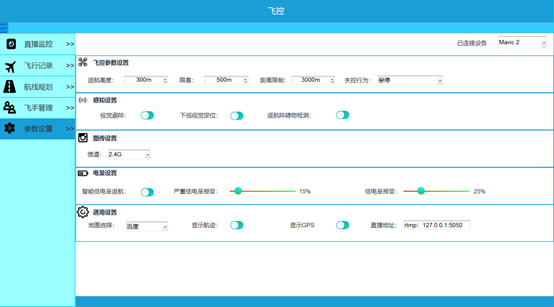 參數設置包括無人機的一些緊急參數設置和基本參數設置。